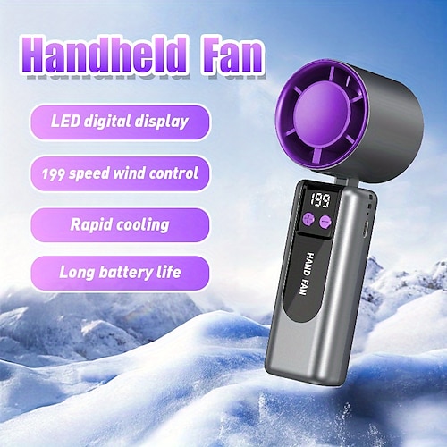 Hochleistungs-Handventilator, tragbarer Turbinenventilator mit 199 Windstufen und LED-Anzeige, um 90° faltbarer Mini-Ventilator, USB-wiederaufladbar, ideal für Reisen, Outdoor-Aktivitäten, Make-up,