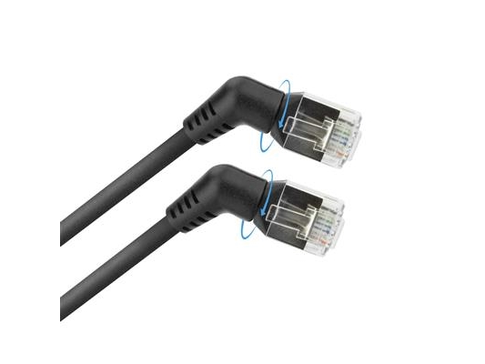 Goobay Patchkabel CAT 5e, 1x 90° vinklad, F/UTP, svart, 5 m kopparklädd aluminiumtråd (CCA), 1x RJ45-plugg 90 ° (8P8C)