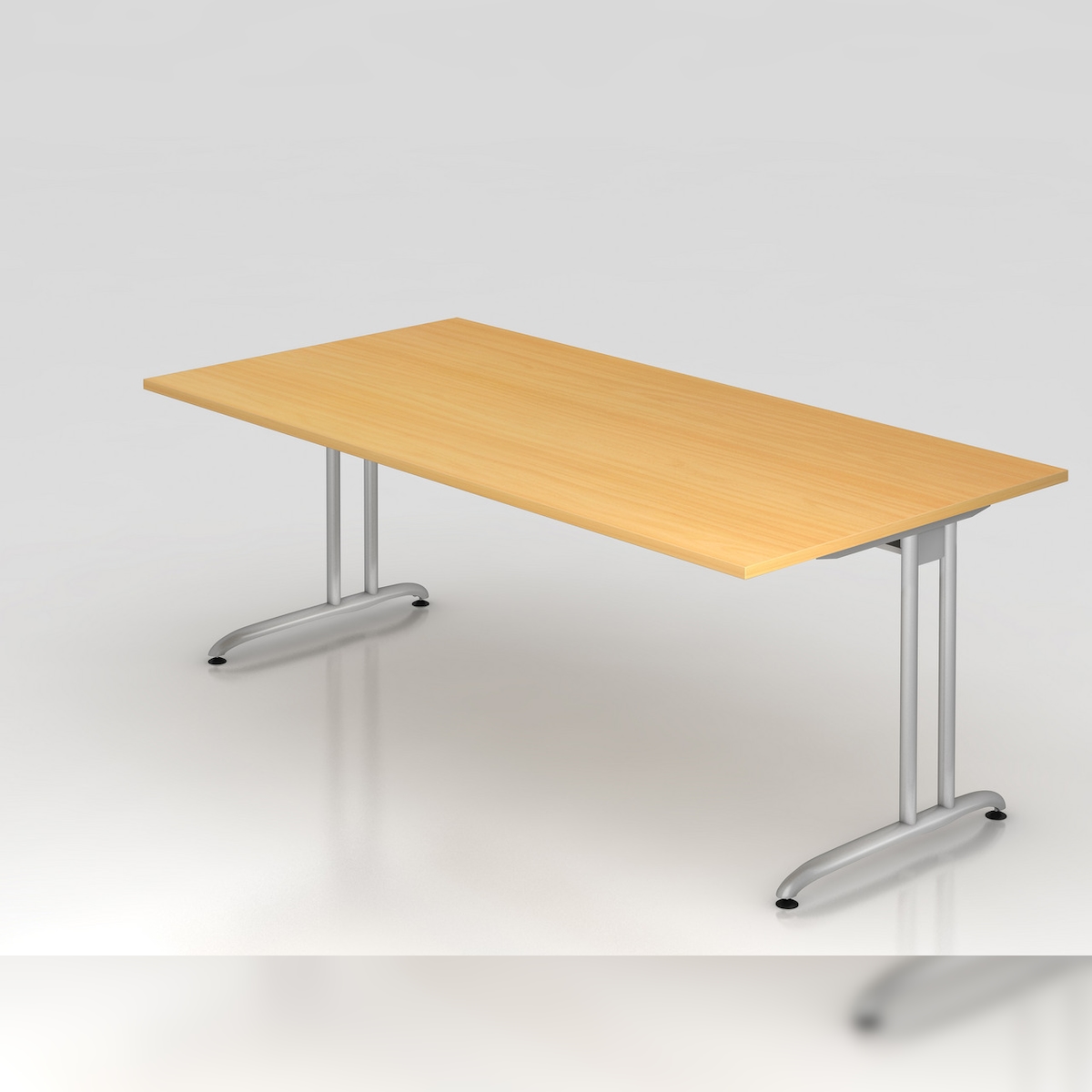 PROREGAL Schreibtisch Markku | Buche | BxT 200x100cm | Arbeitshöhe 72cm | höhenjustierbar 0-10 mm | C-Fuß-Gestell Silber | Bürotisch