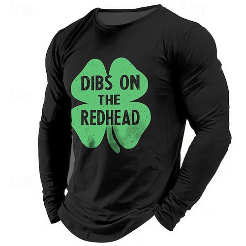 T-shirt a maniche lunghe per uomo per il giorno di San Patrizio, maglietta grafica con trifoglio irlandese fortunato, scollo rotondo con stampa 3D, top per il giorno di San Patrizio
