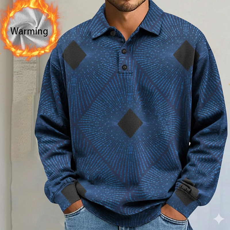 Men's Geometric Abstract Polo Shirts Themmal Shirts Long Sleeve Polo Shirts Lapel Casual Athleisure Holiday Daily Wear 3D Print Fall Winter Blue White Gray