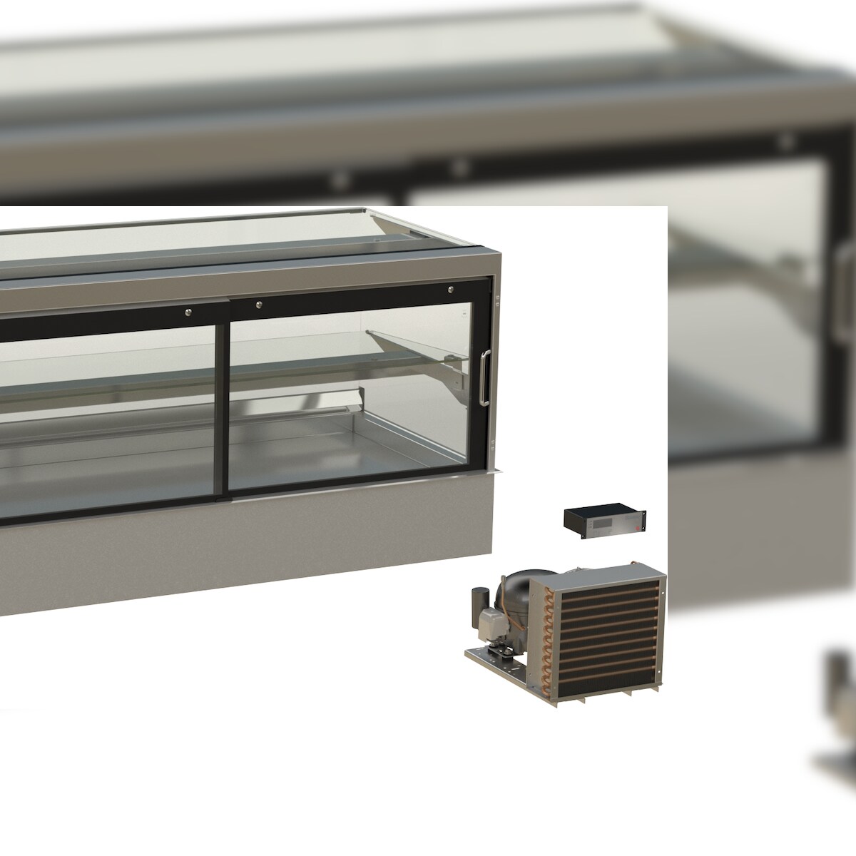 HAGOLA Showcase "Bergen" eckig, für 4x GN 1/1, 2 Auslagen 20mm Tiefe, 1410x510/200x710mm (BxHxT) steckerfertig mit Schnellkupplung