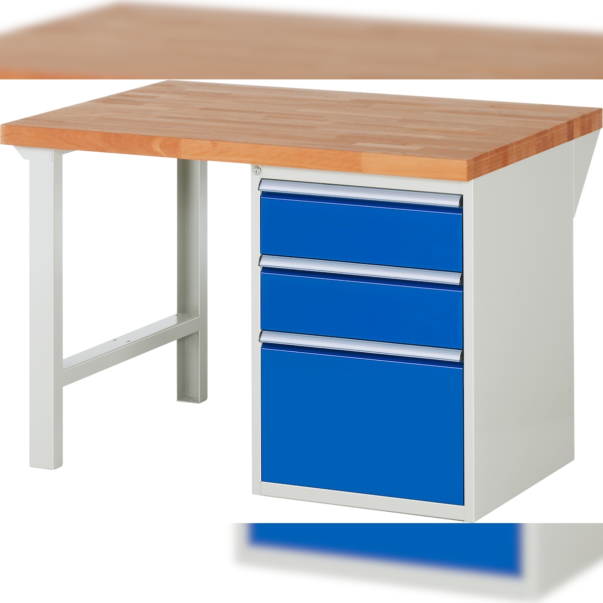 PROREGAL Werkbank Serie 7000 - Modell 7507 | HxBxT 84x125x90cm | 3x Schublade | Schubladenmaße 2x180 + 1x360mm | Lichtgrau | Arbeitstisch Werktisch