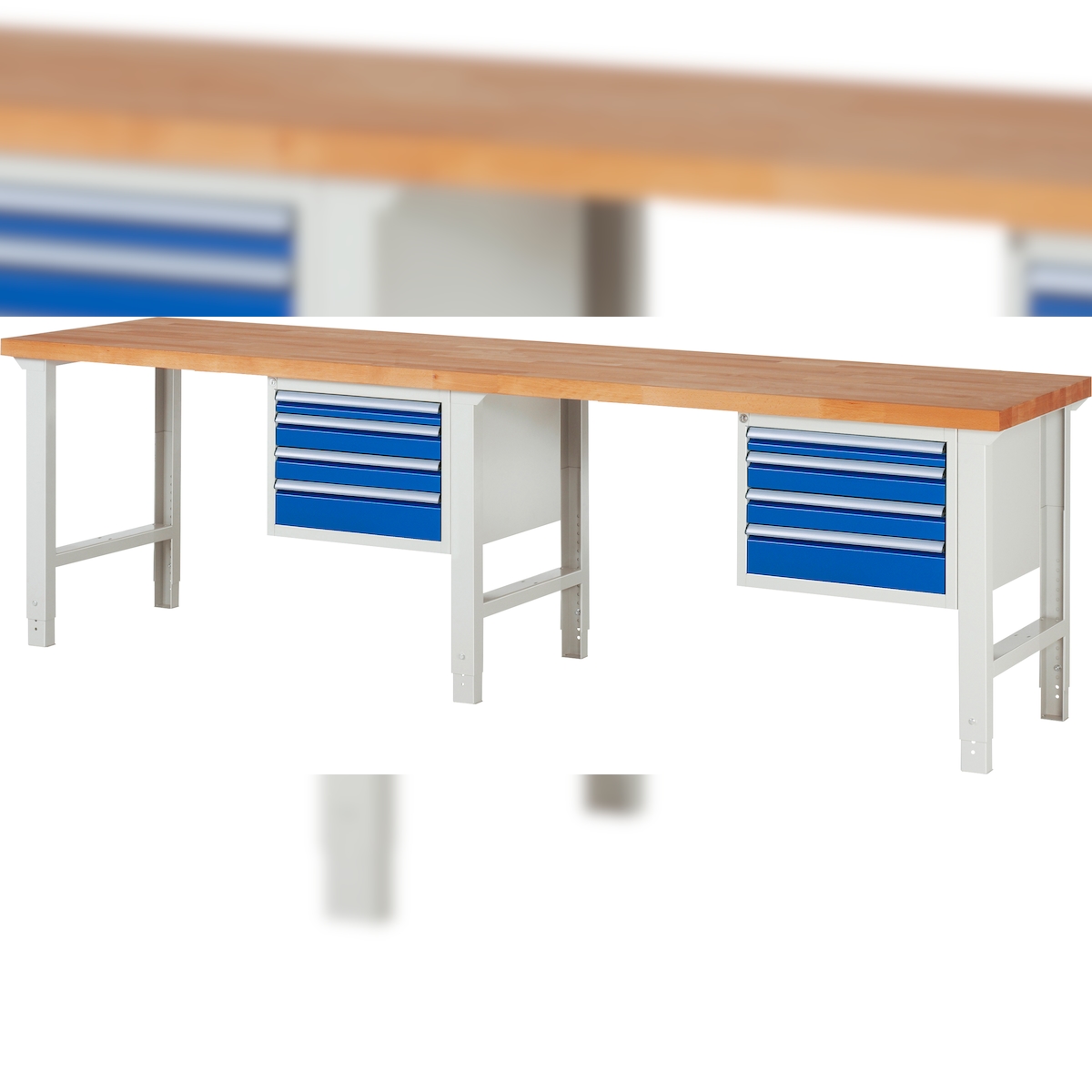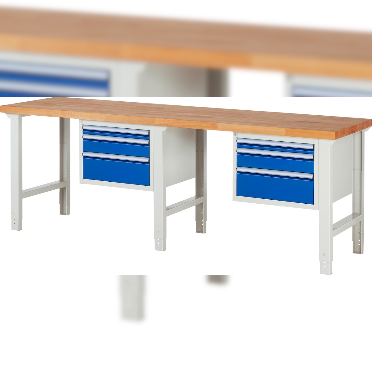 PROREGAL Werkbank Serie 7000 - Modell 7126 | HxBxT 79-114x250x70cm | 6x Schublade | Schubladenmaße 2x60 + 2x120 + 2x180mm