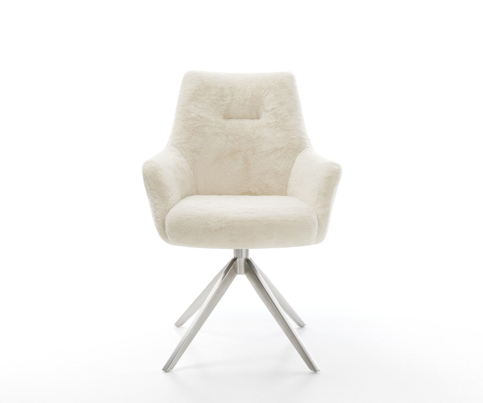 DELIFE Draaistoel Alja-Flex met armleuning pluchen crème-wit kruisframe breed roestvrij staal 360° draaibaar rocker-functie pocketveer kern