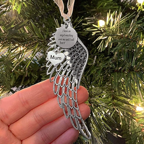 Ornamento commemorativo natalizio, ali d'angelo, campana, decorazione da appendere, ornamento in lega per ricordare la perdita di una persona cara, regalo ricordo per l'albero di Natale