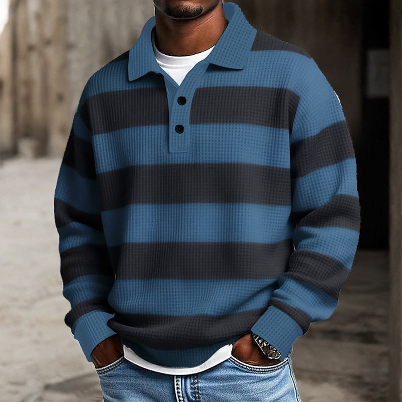 Men's Horizontal Stripes Polo Rugby Polo Textured Long Sleeve Polo Shirts Lapel Sportswear Casual School Athleisure Daily Wear 3D Print Spring Fall Winter Blue Brown Gray