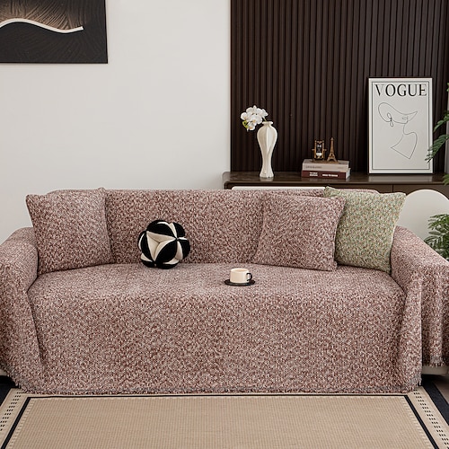 Asciugamano per divano multifunzionale intrecciato colorato color cammello, copridivano universale quattro stagioni, con nappe, adatto per poltrona, divano, divano letto, divano combinato