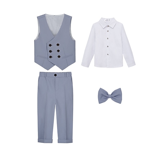 4 Pezzi Completo da paggetto Ragazzi Bambini Abito Gilet, camicia, pantaloni e cravatta Casuale All'aperto Feste Moda Cool Essenziale Tinta unica Tasca Bottoni Blu Beige Grigio Poliestere