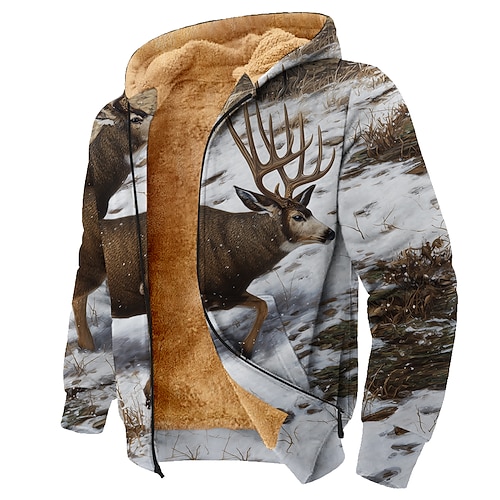 Per uomo Mimetico Cervo Pile Felpa con Cappuccio Giacca di pelle Felpa Classico Militare Da caccia Manica Lunga Girocollo All'aperto Campeggio Marrone Grigio chiaro Marrone 2 Grigio Grigio 2 Con zip