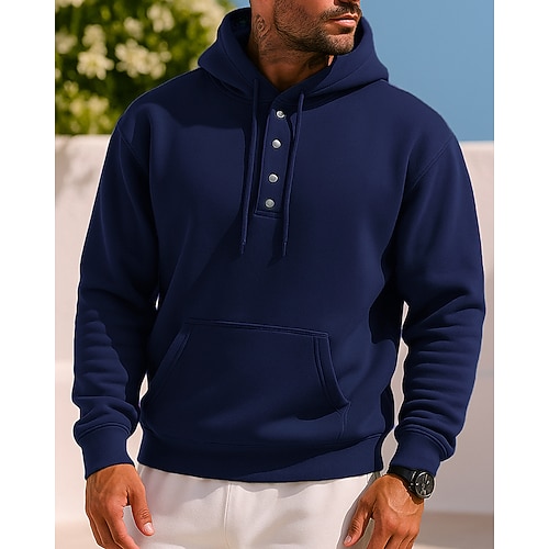 Per uomo Felpa casual Felpa con cappuccio Bottoni Manica Lunga Top Athleisure Tinta unita Di tendenza Caldo All'aperto Viaggio Sportivo abbigliamento sportivo Abbigliamento sportivo Rosso bordeaux