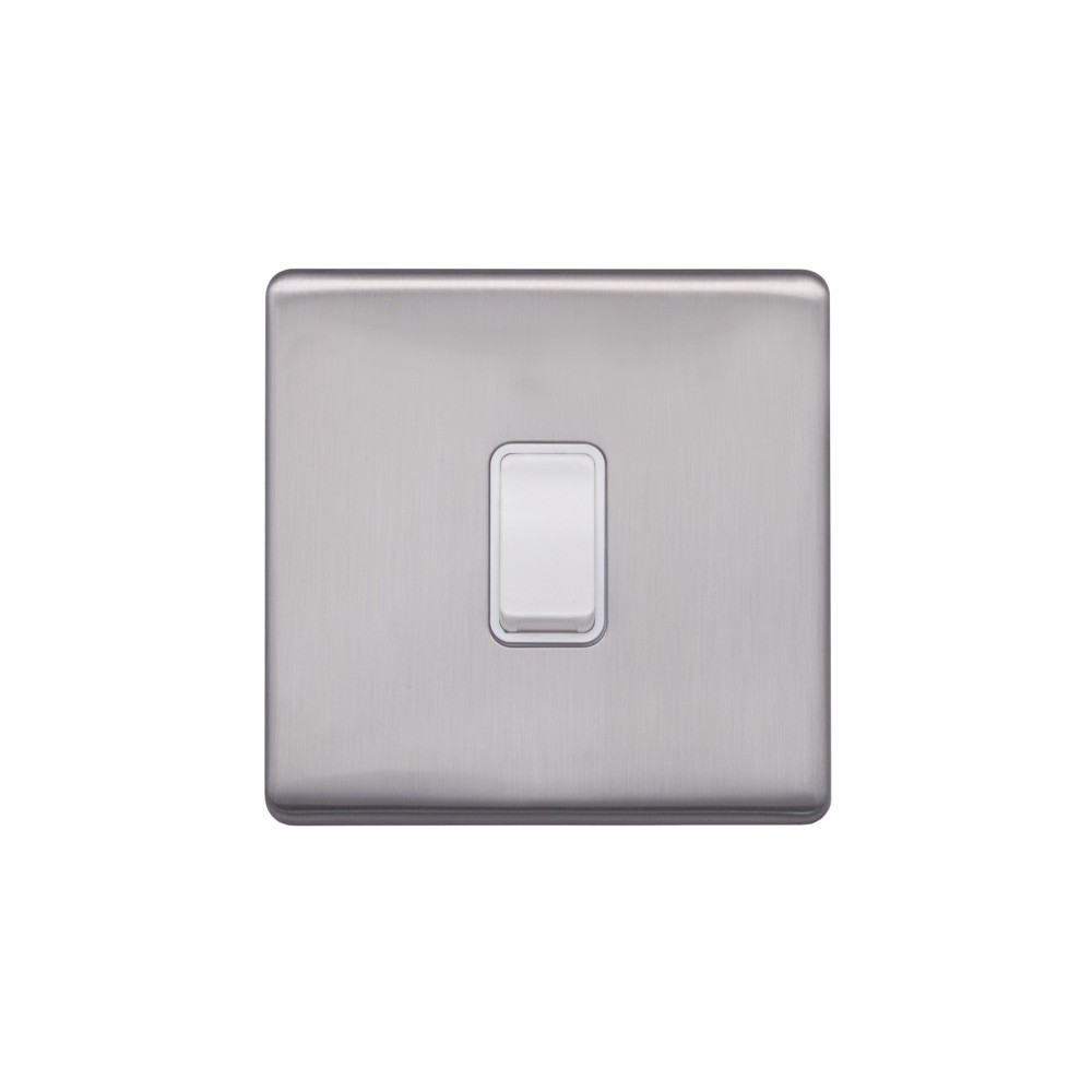 Lieber Brushed Chrome 20A 1 Gang Double Pole Switch - White Insert Screwless - Size: 86mm x 86mm x 2.1 mm