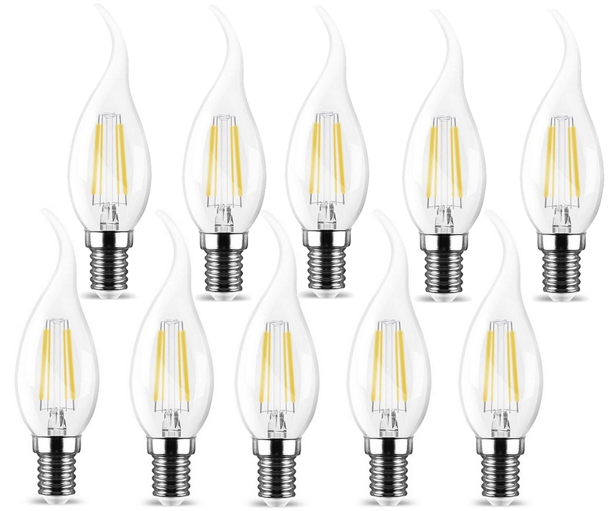 V-Tac 10x LED Leuchtmittel E14 Filament Flamme Kerzenform C35T 4W 400 Lumen Kaltweiß (6500 K)