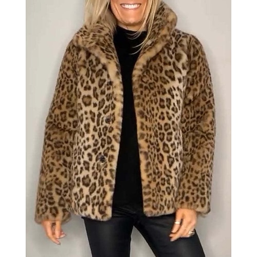 Damen Wintermantel Jacke Warm Bequem Tasche Lässig Leopard Urlaub Alltagskleidung Ausgehen Wochenende Kurz Umlegekragen Normale Passform Langarm Oberbekleidung Rosa Blau Braun Herbst Winter