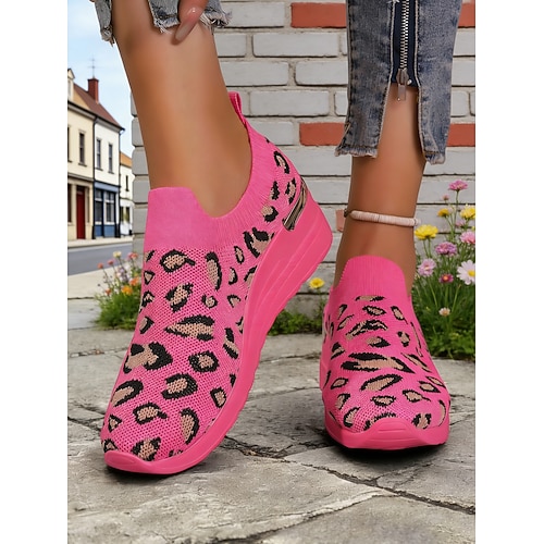 Neongrüne Flyknit-Slipper mit Keilabsatz für Damen – bequeme, dehnbare Freizeitschuhe, ideal für St. Patrick's Day Paraden, Festivalbesuche, Brunch-Dates und alltägliche Besorgungen.
