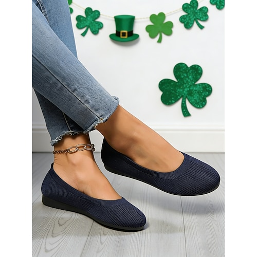 Grüne Flyknit-Ballerinas für Damen – bequeme, dehnbare Slipper, ideal für St. Patrick's Day, Erledigungen, Brunch und Büroalltag.