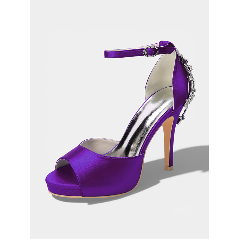 Women's Purple Satin Block Heel Wedding Shoes - Elegant Ankle Strap Open-Toe Bridal Sandals for Formal Events and Parties