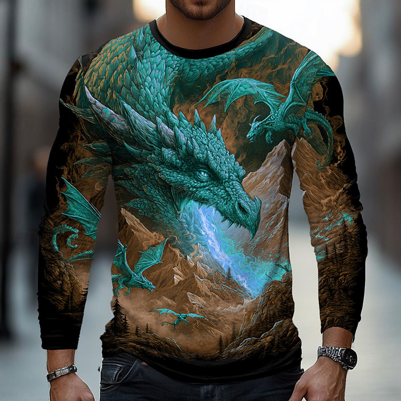 Men's Dragon T Shirt Long Sleeve T shirt 3D Print Crew Neck Shirt Fashion Fantasy Street Casual Daily Yellow Red Green Summer Spring Clothing Apparel S M L XL XXL XXXL