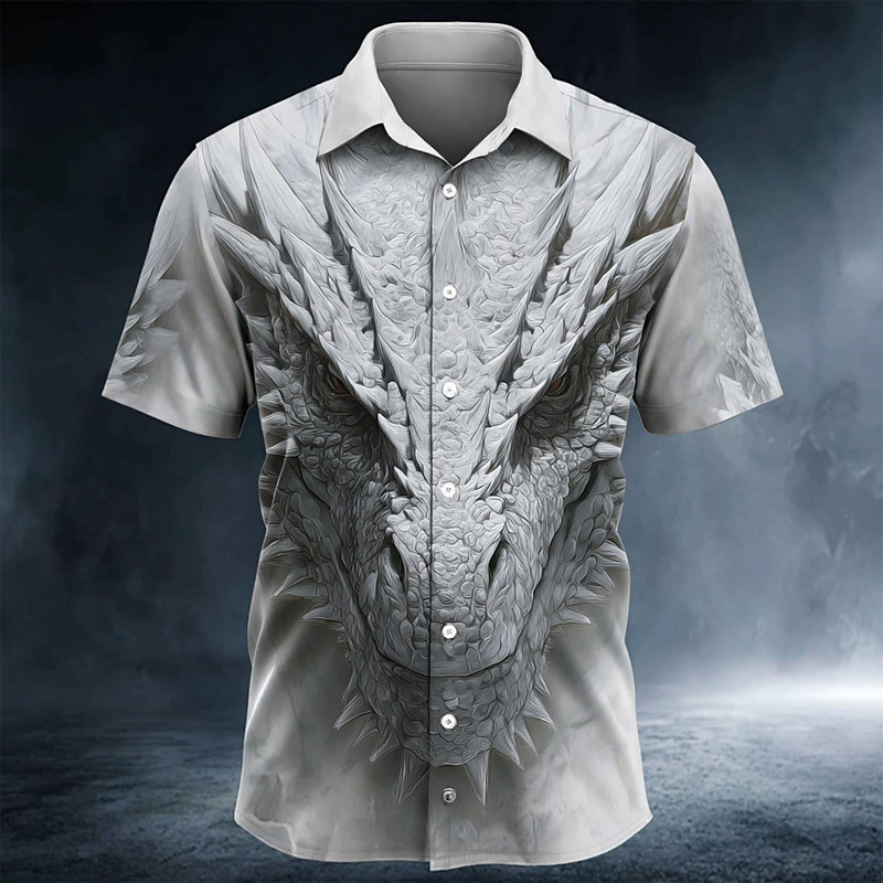 Men's Animal Optical Illusion Dragon Shirt Summer Shirt Button Up Shirt Short Sleeve Fashion Casual Outdoor Vacation Dailywear Summer Spring Turndown 3D Print Collared Shirts Blue Pink Gray