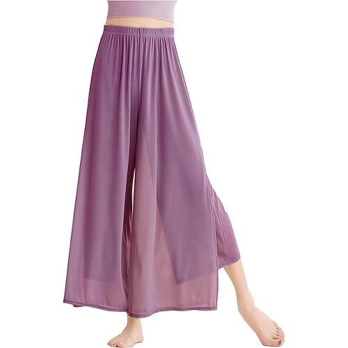 Pantaloni da danza classica da donna, larghi, dritti, in maglia sottile, gamba larga, moderni
