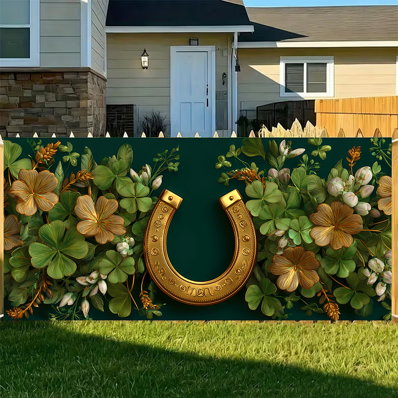 St. Patrick's Day Garage Door Cover Large Hanging Backdrop Horseshoe Vintage Rustic Cottagecore 3D Party Outdoor Shooting Backgrounds Front Door Home Decor