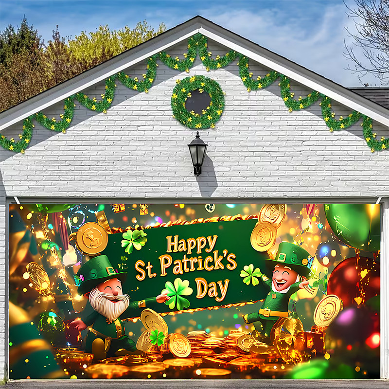 St. Patrick's Day Tapestry Garage Door Cover Large Hanging Backdrop Shamrock Cute 3D Party Outdoor Holiday Shooting Backgrounds Yard Home Decor