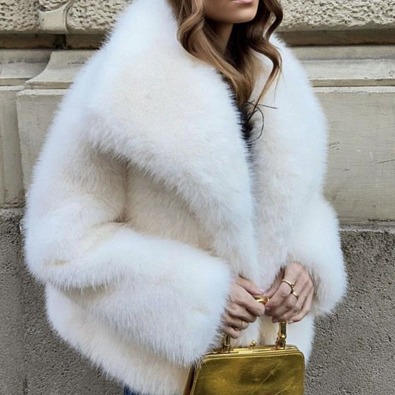 Women's Winter Coat Faux Fur Coat Windproof Warm Pocket Cropped Fur Collar Open Front Elegant Plush Classic Modern Plain Outdoor Vacation Street Casual Open Front Short Turndown Regular Fit Long