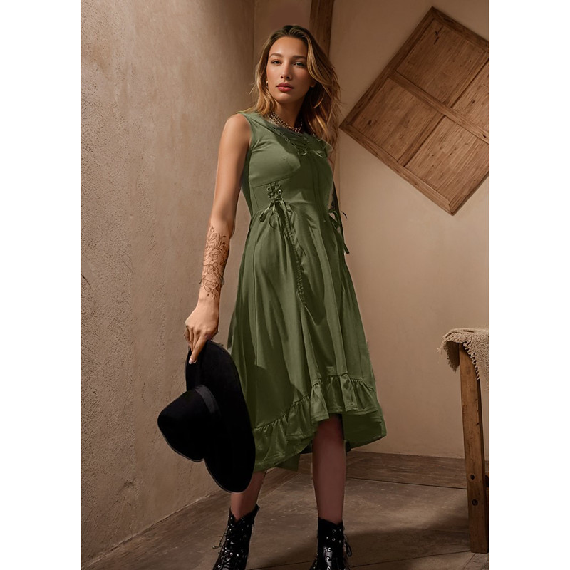 Punk Gothic Renaissance Steampunk Dress Witch Goth Girl Solid Color Fancy Dress Women's Fantasy Steampunk Walpurgis Night Halloween Carnival Masquerade Casual Daily Adults' Dress