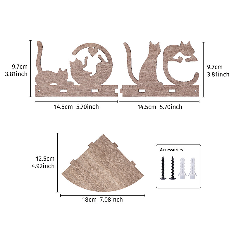 Valentine's Day Creative Cat LOVE Letter Floating Shelf, Wooden DIY Wall-Mounted Corner Display Rack, Room Decoration Shelf for Home, Living Room, Weddings, Anniversary Party Décor