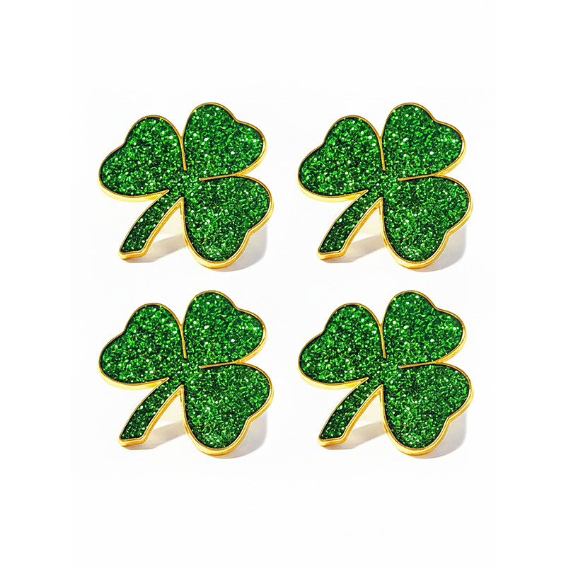 Women's St. Patrick's Day Shamrock Brooch Pin Set, Alloy Material w, 4-Piece Clover Pin Set, Elegant Festive Irish Style for Hats, Jackets, Bags, Parades, Parties Holiday Celebrations