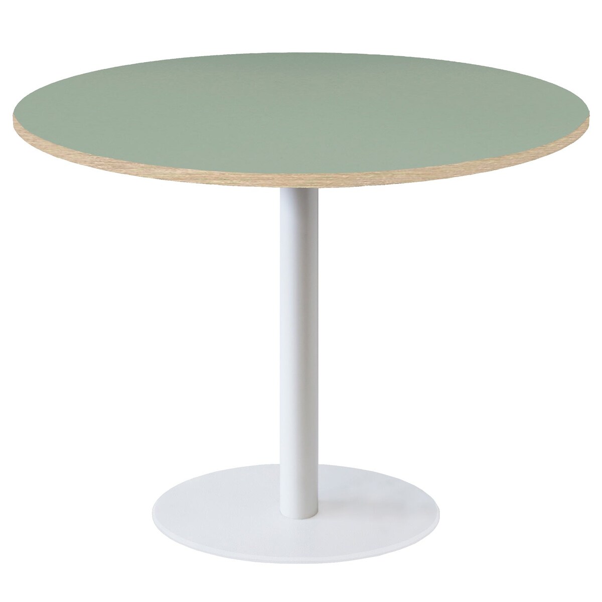 RestooTab - Tisch Rome XL weiß Ø120 Dekor grün celadon Kanten in Holzoptik
