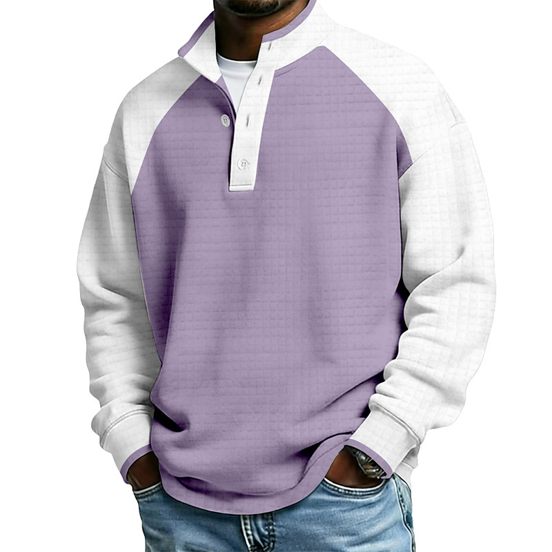 Men's Color Block Color Gradient Waffle Sweatshirt Fashion Daily Casual High Neck Home Outdoor Streetwear Office Blue Purple Green Dark Blue Buttons Fall Winter Designer S M L XL XXL XXXL