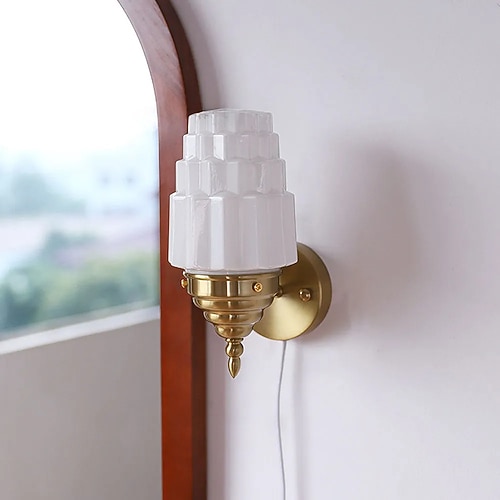 Lampada da parete Bauhaus, applique da parete cromata, moderna lampada da parete color crema, creativa, a forma di microfono, apparecchio di illuminazione per la casa con paralume in vetro spesso