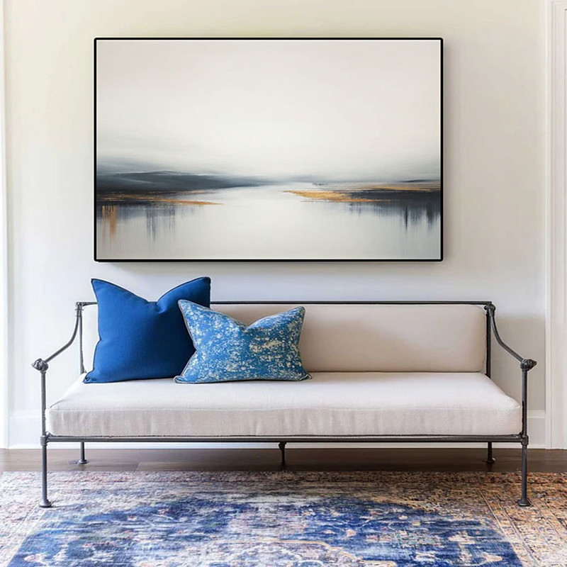 Himmel und Ozean Gemälde handgemalt beruhigende Landschaftsmalerei neutrale Landschaft Ölgemälde handgemachtes hellbeige ästhetisches Acryl Wellen Meer Gemälde minimalistisches Kunstgemälde