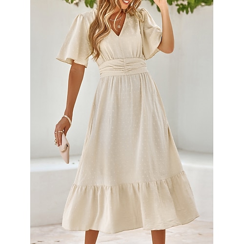 Per donna Abito Midi Abito a trapezio Abito Estivo Casual Quotidiano Vestibilità regolare Semplice Manica Corta Scollo a V Verde chiaro Rosso Albicocca Estate Primavera