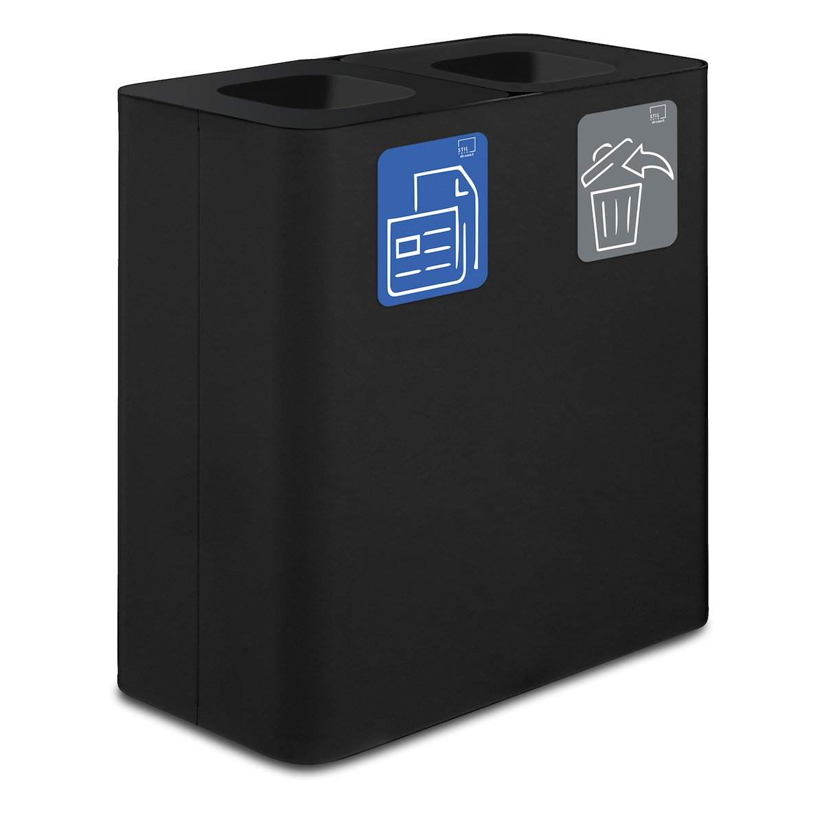 Stil Casa PURE Abfallsammelsystem, lackierter Stahl, 77x38xh. 80 cm, 200 Liter mit zwei Fächern zu je 100 Litern, schwarz.