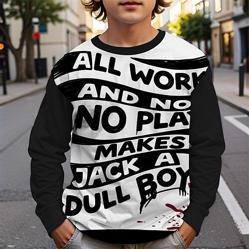 Halloween Jungen 3D Buchstabe T-Shirt Langarm Frühling Herbst Mode Basic Kinder 4-12 Jahre Rundhalsausschnitt Outdoor Lässig Täglich Normale Passform
