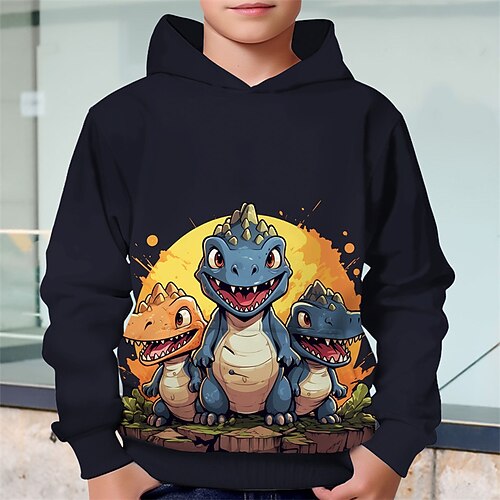 Jungen 3D Dinosaurier Kapuzensweatshirt Langarm Frühling Herbst Mode Streetwear Kinder 4-12 Jahre Mit Kapuze Outdoor Lässig Täglich Normale Passform