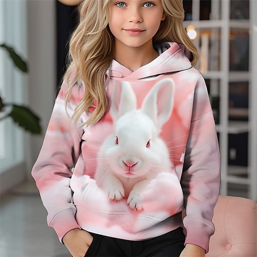 Mädchen 3D Kaninchen Kapuzensweatshirt Langarm Herbst Winter Mode Niedlich Basic Kinder 4-12 Jahre Mit Kapuze Outdoor Lässig Täglich Normale Passform