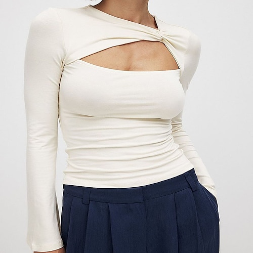 Per donna Blusa Top traforato Semplice Elegante Sexy Manica Lunga Girocollo Top Regolari Ferie Uscire Taglio Nero Bianco Rosa Verde Grigio Estate Primavera Autunno Inverno