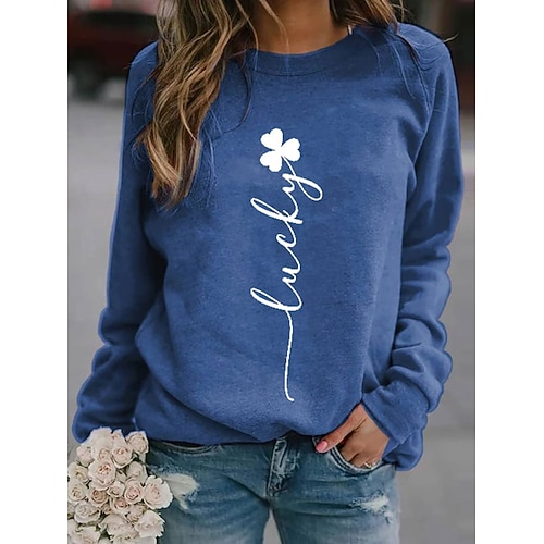 Per donna Pullover Felpe Grafico Trifoglio Casual Manica Lunga Girocollo Top Regolari Casuale Ferie Stampato Blu Nero Verde Primavera Inverno