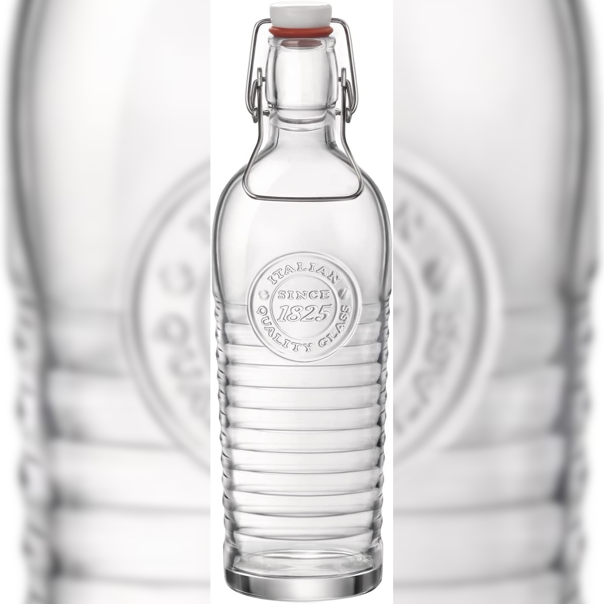Bormioli Rocco Officina 1825 Transparente Glasflasche mit weißem mechanischem Verschluss, 1,2 ltr.