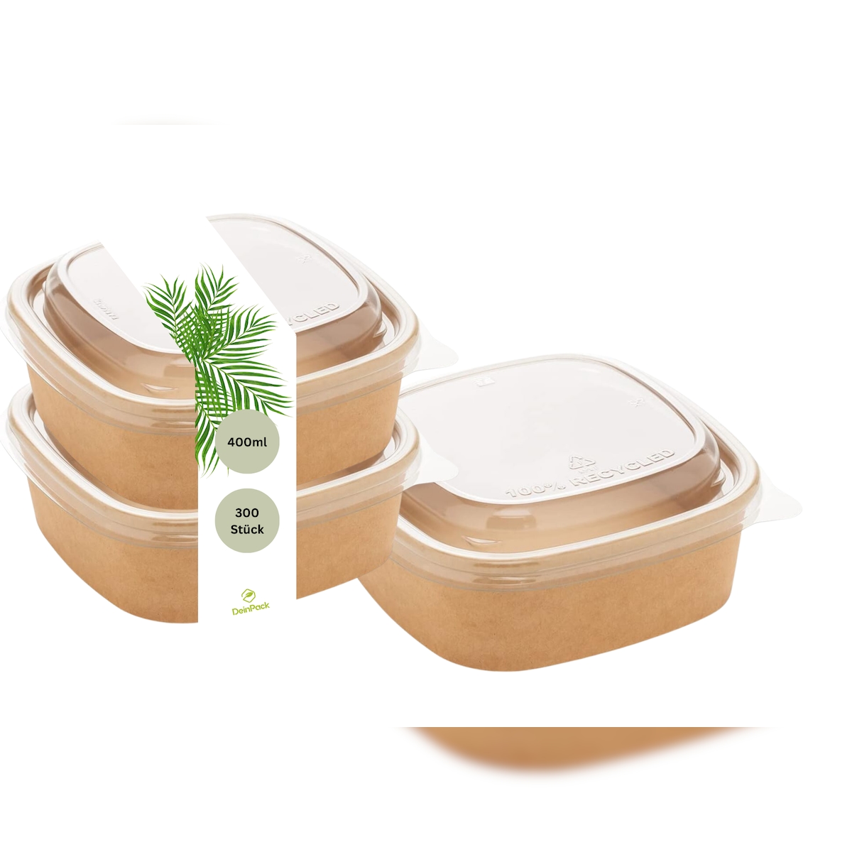 DeinPack 300 Salatschale mit PET Deckel braun eckig 400 ml