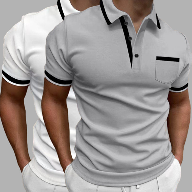 2 Pieces Men's Color Block Polo Shirts Pocket Golf Shirt Short Sleeve Lapel Fashion Basic Comfortable Sports Outdoor Casual Athleisure Front Pocket Summe