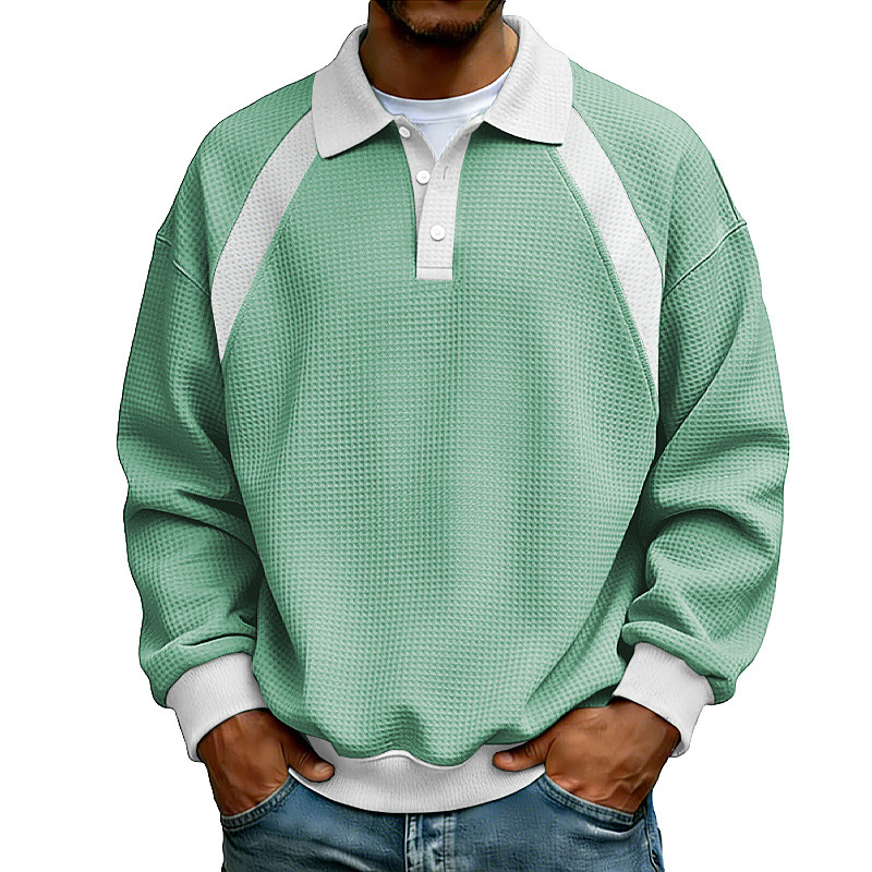 Men's Waffle Polo Shirts Polo Shirts Casual Street Lapel Long Sleeve Basic Modern Color Block Patchwork Buttons Spring Fall Regular Fit Black Light Green Navy Blue Gray Light Blue Waffle Polo Shirts