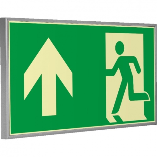 Schild | PERMALIGHT power langnachleuchtend Rettungszeichen geradeaus, Rahmen silber, ASR/ISO, Kunststoff, 300x150mm