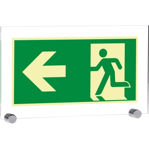 PERMALIGHT power langnachleuchtend Rettungszeichen Rettungsweg links, ASR/ISO, Klemmbefestigung, Acryl, 347x198mm