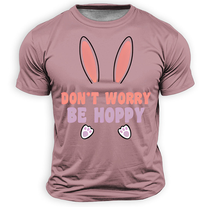 Bunny Rabbit T Shirt Dont Worry Be Hoppy Funny Pun Graphic Tee Pink Cute Animal Ears Paws Print Spring Holiday Gift For Men Women Clothing Apparel S M L XL XXL XXXL