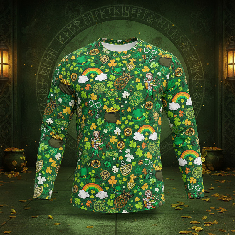 St. Patrick's Day Long Sleeve T-Shirt for Men Lucky Irish Clover Shamrock Graphic Tee 3D Print Crew Neck St. Paddy's Day Top
