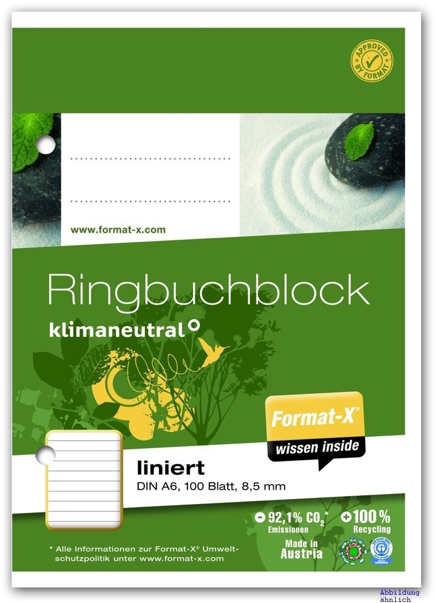 Ringbuchblock A6 70g 100 Blatt 9mm liniert